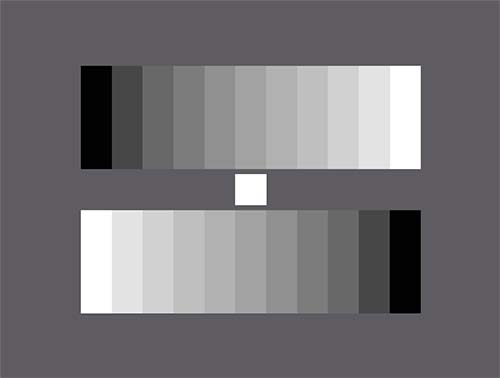 TE084灰度测试卡用于电子摄像机的色调再现性的评估。两个11级灰度级的灰度级被设置在一个灰色的背景上(D≈0.65),灰阶密度Gamma = 1,灰阶的对比范围是40:1。